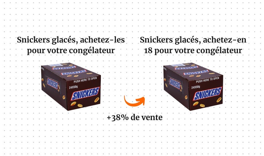 Notre cerveau est paresseux et cherche des raccourcis mentaux pour prendre une décision (heuristiques). En remplaçant le mot “les” par “18”, cela répond immédiatement à la question : “J’en achète combien ?”