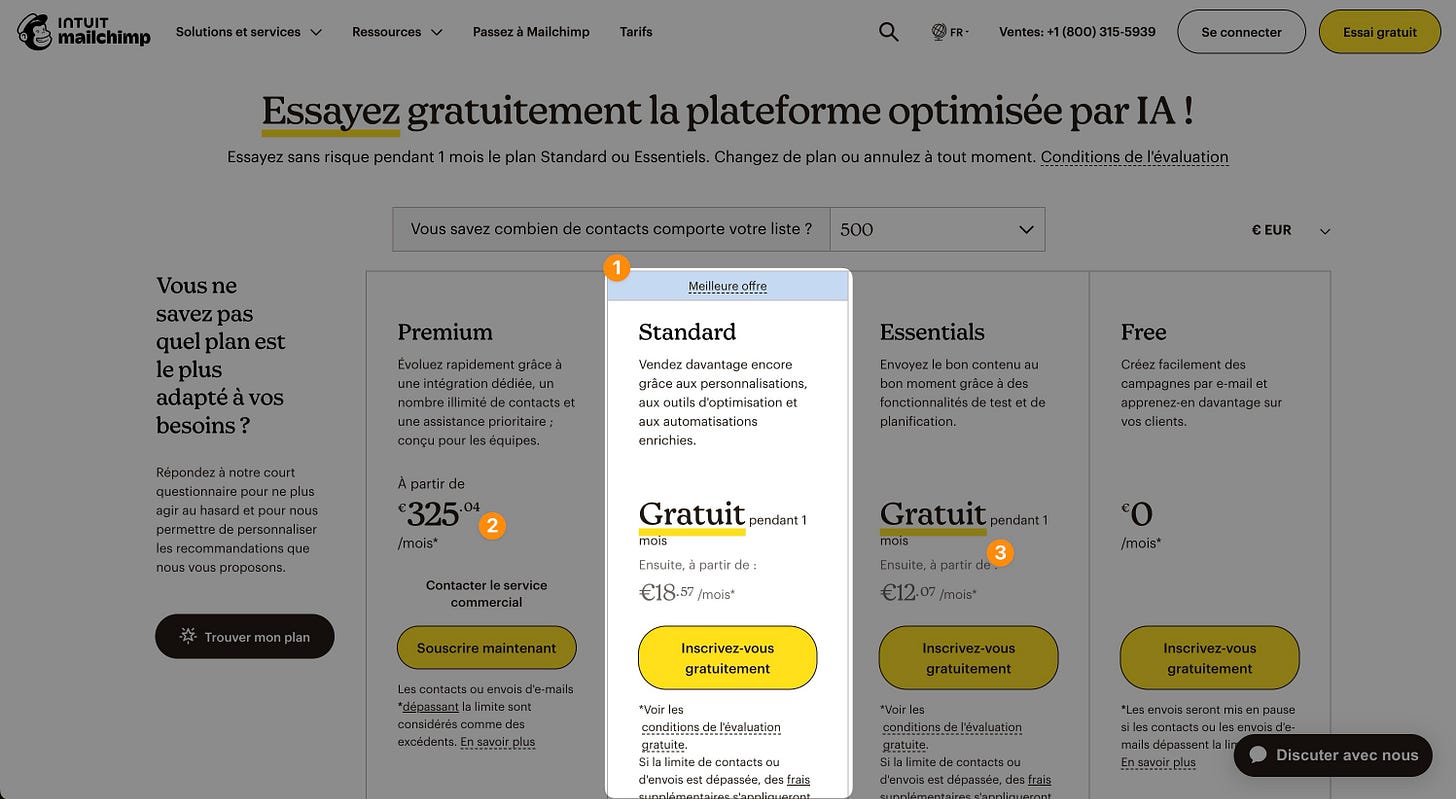 Par exemple, voici comment nos yeux perçoivent la page de pricing de Mailchimp :