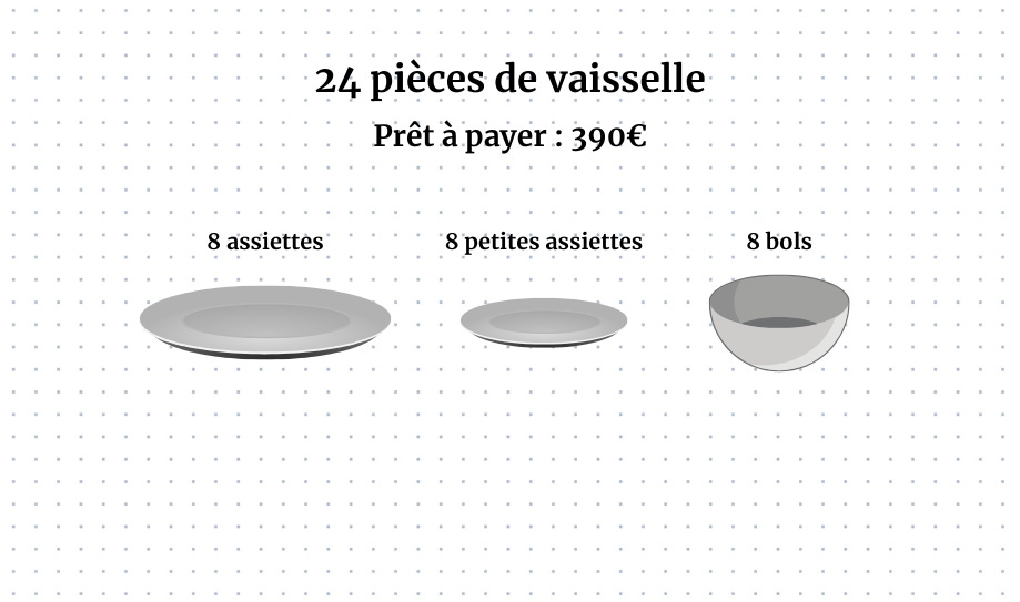 Lors dâune expĂ©rience, on a prĂ©sentĂ© Ă des Ă©tudiants 2 services de vaisselle et on leur a demandĂ© combien ils seraient prĂȘts Ă payer pour chacun :