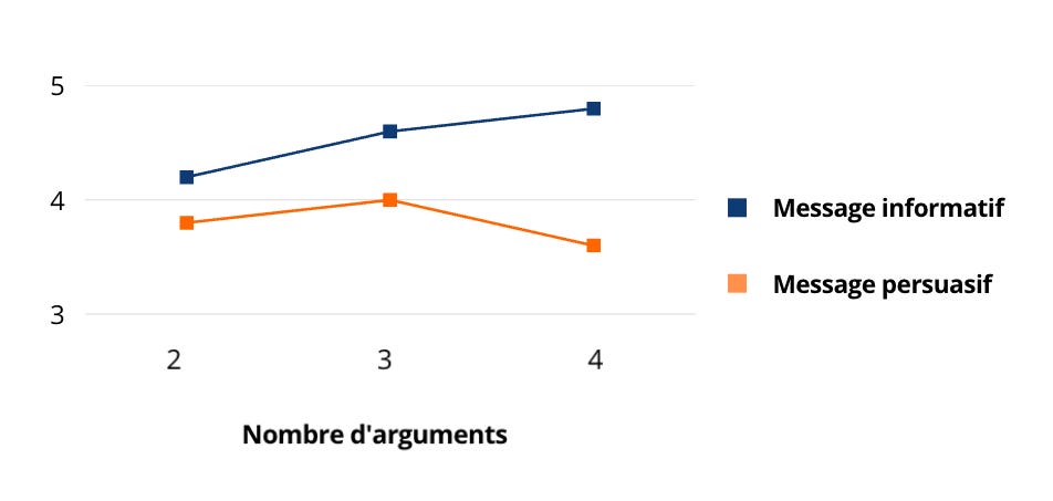 Mais en passant de 4 Ă 3 arguments le message Ă©tait 10,4âŻ% plus convaincant.