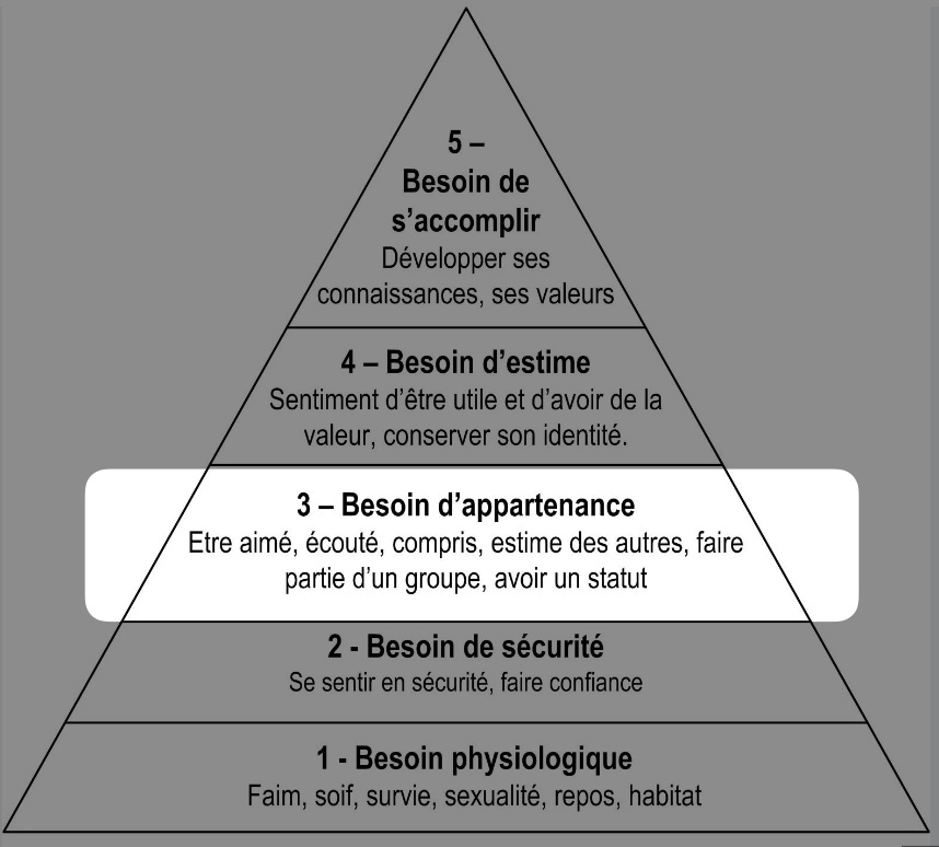 Comme on peut le voir sur la pyramide de Maslow, le âstatutâ est le besoin Ă©lĂ©mentaire qui vient juste aprĂšs la survie et la sĂ©curitĂ© :