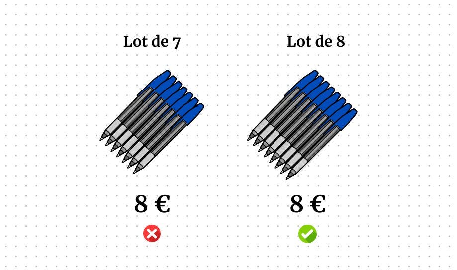 Les études montrent que le consommateur préfère un lot quand il peut facilement calculer le prix d’une unité.