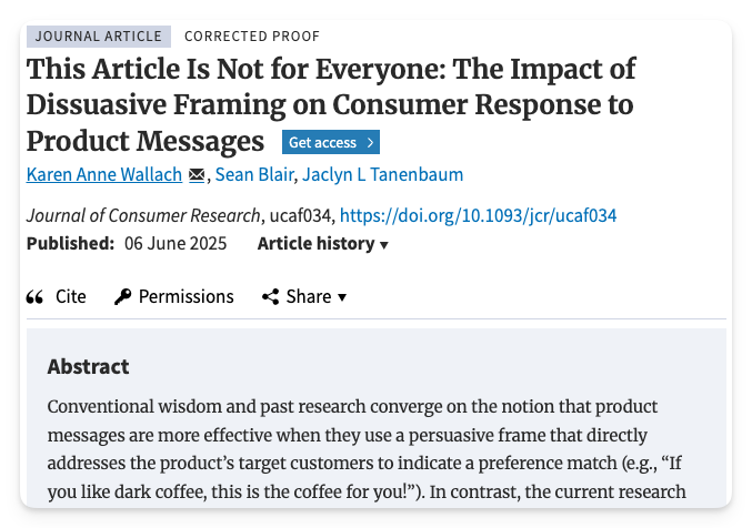 Une étude a montré que les gens sont jusqu’à 48% plus enclins à choisir un produit quand il indique à qui il n’est PAS destiné.