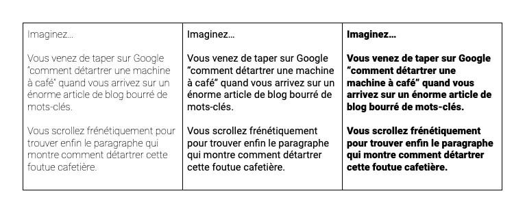 Ou encore en passant des lignes. Et en mettant certains mots en gras…