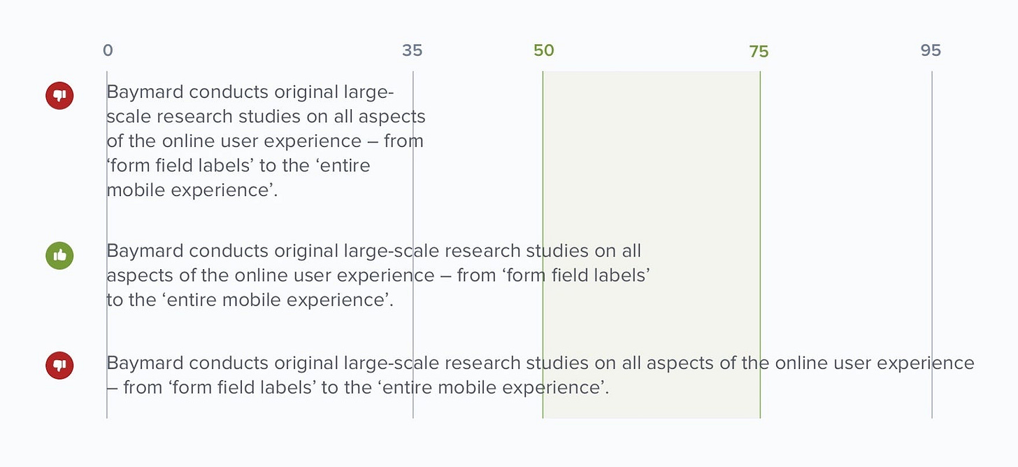 Par exemple pour améliorer la lisibilité, la largeur optimale d’une ligne de texte doit être entre 50 et 75 caractères :